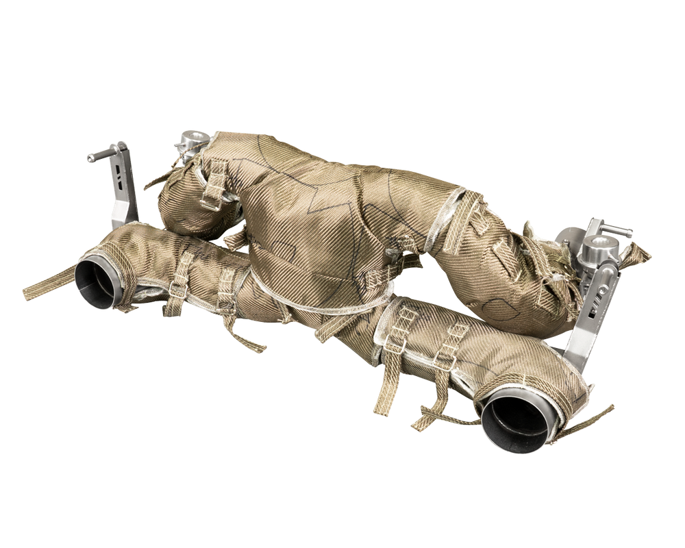The muffler is available in Stainless steel and titanium. The titanium will even produce a higher pitch. The titanium comes with a full heat blanket and the stainless steel with heat shields, this in order to prevents excessive heat from the engine, which may cause heat-soaks, hindering performance.