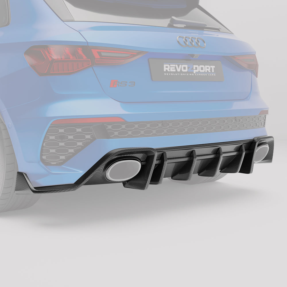 Handcrafted from premium prepreg carbon fiber, this diffuser offers a flawless fit and a refined finish. Its design integrates seamlessly, elevating the overall aesthetics of the RS3 while reflecting the highest standards of craftsmanship.