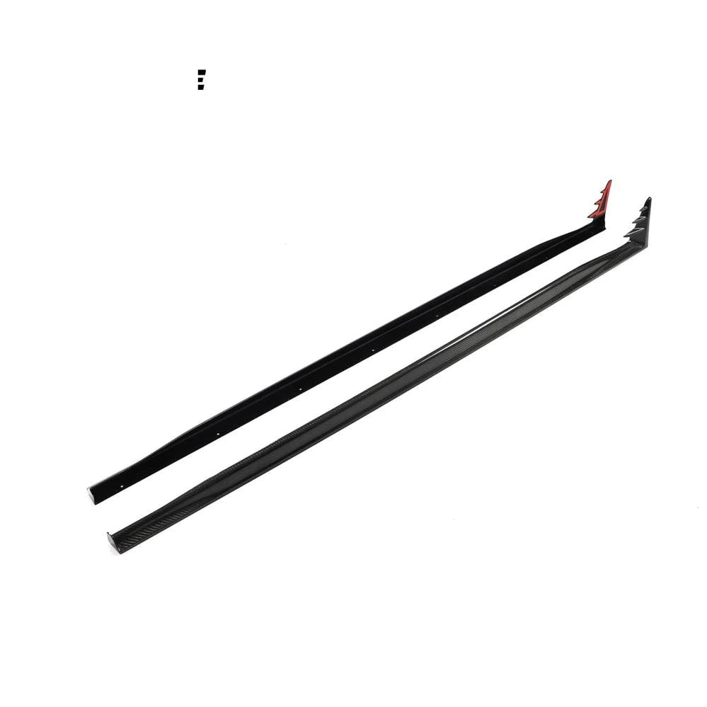 💪 Durable Material: Crafted from carbon fiber, these side skirts are built to last. They undergo a meticulous 3D design process, CNC molding, and test installation on real cars, guaranteeing 100% fitment and durability.